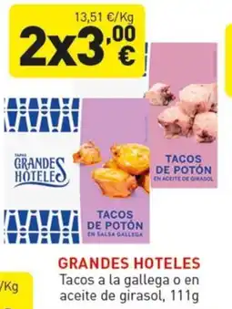 | Grandes hoteles - tacos en salsa gallega o en aceite de girasol | Hiperber | 1,89 € | 12 febrero 2026 | 04 marzo 2026 | |||