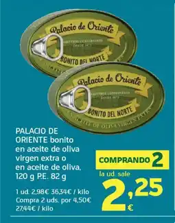 | Bonito en aceite de oliva palacio de oriente | HiperDino | 2,49 € | 23 junio 2023 | 06 julio 2023 | |||