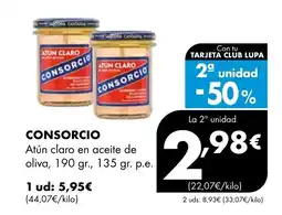 | CONSORCIO Atún claro en aceite de oliva | Supermercados Lupa | 3,96 € | 18 septiembre 2025 | 01 octubre 2025 | |||