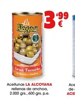 | 1 | LA ALCOYANA Aceitunas rellenas de anchoa 2.000 g | TOP Cash & Carry | 3,99 € | 08 abril 2026 | 21 abril 2026 | Mirar oferta | |||