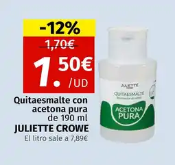 Maskom Supermercados JULIETTE CROWE Quitaesmalte con acetona pura oferta