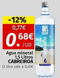 | CABREIROA Agua mineral 1,5 litros | Maskom Supermercados | 0,77 € | 0,68 € | -12% | 02 febrero 2026 | 01 marzo 2026 | |