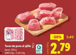 2Lidl Tacos de pavo al ajillo ofertaTacos de pavo al ajillo 500 gLidl3,49 €2,79 €-20%09 marzo 202615 marzo 2026 Mirar oferta