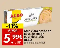 | ALBO Atún claro aceite de oliva de 201 gr o virgen extra | Maskom Supermercados | 5,99 € | 4,95 € | 1,04 € Descuento | 01 julio 2025 | 03 agosto 2025 | |