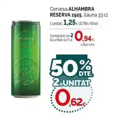 | ALHAMBRA Cervesa Reserva 33 cl | Sorli | 0,63 € | 2a unitat -50% | 19 noviembre 2025 | 09 diciembre 2025 | ||