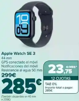 Carrefour Apple Watch SE 3 ofertaApple Watch SE 3Carrefour299,00 €279,00 €20,00 € Descuento07 abril 202622 abril 2026