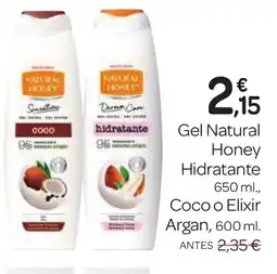 Supermercados El Jamón Gel Natural Honey Hidratante Coco o Elixir Argan oferta