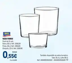 | Aro - vaso vidrio | Makro | 0,55 € | 03 abril 2026 | 05 julio 2026 | |||