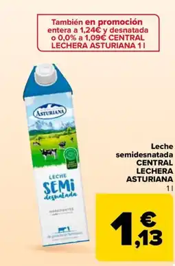 | ASTURIANA Leche semidesnatada central lechera 1 L | Carrefour Market | 1,13 € | 1,09 € | 0,04 € Descuento | 11 julio 2025 | 23 julio 2025 | |