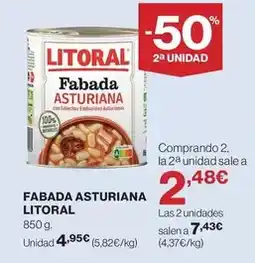 | LITORAL Fabada asturiana 420 g | Hipercor | 3,90 € | 2,60 € | 1,30 € Descuento | 23 octubre 2025 | 05 noviembre 2025 | |