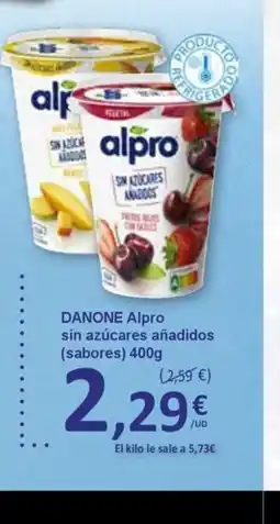 5 | ![]() | DANONE Alpro sin azúcares añadidos (sabores) 400 g | SPAR | 2,59 € | 2,29 € | 0,30 € Descuento | 01 octubre 2025 | 16 octubre 2025 | Mirar oferta |