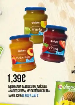 Mermelada ifa eliges 0% azúcares añadidos fresa, melocotón o ciruela tarro