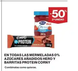 CORNY En todas las mermeladas 0% azúcares añadidos heroy barritas protein