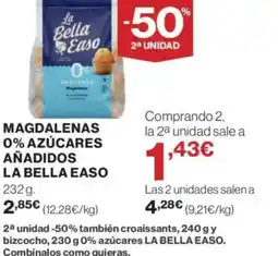 8 | ![]() | LA BELLA EASO Magdalenas 0% azúcares añadidos 232 g | El Corte Inglés | 1,43 € | -50% 2a UNIDAD | 09 octubre 2025 | 22 octubre 2025 | Mirar oferta | |