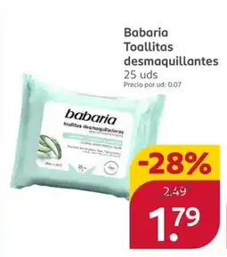 2Rossmann BABARIA Toallitas desmaquillantes ofertaBABARIA Toallitas desmaquillantesRossmann2,49 €1,79 €-28%12 enero 202625 enero 2026 Mirar oferta