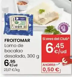 | FROITOMAR Lomo de bacalao desalado 300 g | Eroski | 6,95 € | 4,86 € | -30% de descuento | 18 septiembre 2025 | 30 septiembre 2025 | |