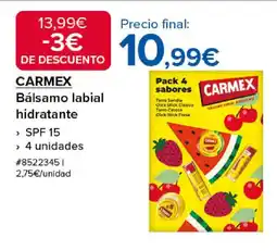 Actualmente hay varias promociones activas para Bálsamo labial, disponibles en Costco y otras grandes cadenas. Se incluyen acciones como 1+1 gratis, 25 % de descuento o precios promocionales en productos como CARMEX Bálsamo labial hidratante, DIA MARI MARINERA Tonyina en oli de gira-sol y Muslos de pollo enteros. Con los filtros puedes seleccionar fácilmente por formato, contenido o marca preferida.
