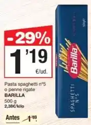 | BARILLA Pasta spaghetti o penne rigate 500 g | SPAR Fragadis | 1,35 € | -21% | 23 enero 2025 | 05 febrero 2025 | ||