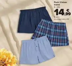 | Pack 3 bóxer trama S-2XL | Carrefour | 14,99 € | 08 abril 2026 | 14 mayo 2026 | |||