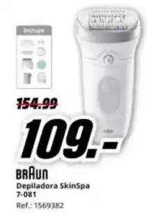 | BRAUN Depiladora Silk-épil 7 SkinSpa 7-081 | MediaMarkt | 154,99 € | 99,00 € | 55,99 € Descuento | 24 julio 2025 | 31 julio 2025 | |