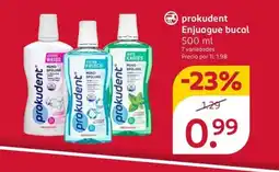 Rossmann PROKUDENT Enjuague bucal ofertaPROKUDENT Enjuague bucal 1500 mlRossmann1,29 €0,99 €-23%12 enero 202625 enero 2026