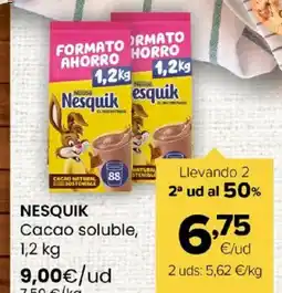 | 1 | NESQUIK Cacao soluble 2-4 kg | Autoservicios Familia | 9,00 € | 6,75 € | 2,25 € Descuento | 26 febrero 2026 | 11 marzo 2026 | Mirar oferta | |