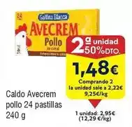 | Caldo Avecrem pollo 24 pastillas 240 g | FROIZ | 1,48 € | 50% | 08 enero 2025 | 22 enero 2025 | ||