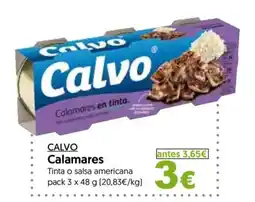 | 1 | CALVO Calamares 3 x 48 g | Hiper Usera | 3,65 € | 3,00 € | 0,65 € Descuento | 30 marzo 2026 | 30 abril 2026 | Mirar oferta | |