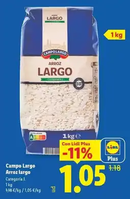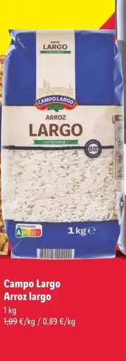 1Lidl Campo Largo Arroz largo ofertaCampo Largo Arroz largo 1 kgLidl1,09 €0,89 €-18%13 abril 202619 abril 2026 Mirar oferta