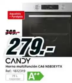 | Candy - horno multifunción n5b3eytx | MediaMarkt | 349,00 € | 279,00 € | 70,00 € Descuento | 23 abril 2026 | 28 abril 2026 | |