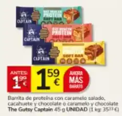 1Consum Captain - barrita de proteina con caramelo salado, cacahuete y chocolate o caramelo y chocolate ofertaCaptain - barrita de proteina con caramelo salado, cacahuete y chocolate o caramelo y chocolateConsum1,99 €1,59 €0,40 € Descuento26 febrero 202625 marzo 2026 Mirar oferta