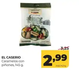 1Alimerka EL CASERIO Caramelos con piñones ofertaEL CASERIO Caramelos con piñones 145 gAlimerka3,25 €2,99 €0,26 € Descuento26 marzo 202622 abril 2026 Mirar oferta