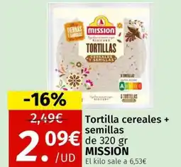 | MISSION Tortilla cereales + semillas 320 g | Maskom Supermercados | 2,49 € | 2,09 € | -16% | 02 febrero 2026 | 01 marzo 2026 | |