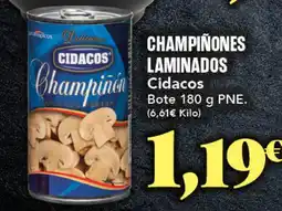 Alimerka CIDACOS Champiñones laminados extra ofertaCIDACOS Champiñones laminados extra 150 gAlimerka1,50 €01 enero 202628 enero 2026