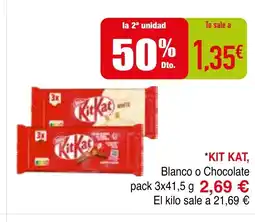| 2 | KIT KAT, Blanco o Chocolate 3 x 41.5 g | mYm supermercados | 2,69 € | 1,35 € | 1,34 € Descuento | 29 enero 2026 | 25 febrero 2026 | Mirar oferta | |