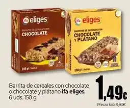 Unide Market Ifa eliges - barrita de cereales con chocolate o chocolate y plátano, 6 uds. 150 g ofertaIfa eliges - barrita de cereales con chocolate o chocolate y plátano, 6 uds. 150 gUnide Market1,49 €12 febrero 202625 febrero 2026