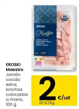 Aliprox EROSKI Maestro Jamón cocido extra, lonchas colocadas a mano, oferta