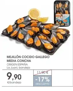| Mejillón cocido gallego media concha | Supermercados Plaza | 11,90 € | 9,90 € | -17% descuento | 23 abril 2026 | 06 mayo 2026 | |