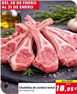 Hiper Usera Chuletillas de cordero lechal ofertaChuletillas de cordero lechalHiper Usera20,95 €18,95 €2,00 € Descuento28 enero 202614 febrero 2026