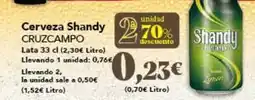 | CRUZCAMPO Cerveza Shandy descuento 33 cl | Gadis | 0,20 € | 2a unidad 70% | 15 enero 2026 | 21 enero 2026 | ||