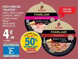 E.Leclerc Palacios - pizza familiar. jamón, bacón y queso o barbacoa, 580 g o cuatro quesos, 560 g oferta