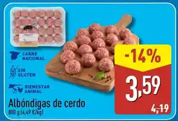 | 1 | Albóndigas de cerdo 800 g | ALDI | 4,19 € | 3,59 € | -14% | 12 enero 2026 | 18 enero 2026 | Mirar oferta | |