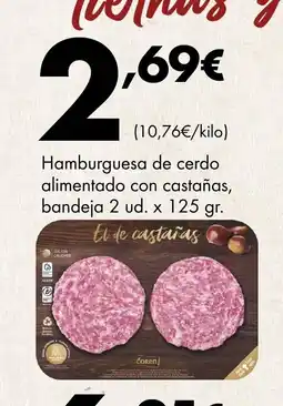 | Hamburguesa de cerdo alimentado con castañas, bandeja 125 g | Supermercados Lupa | 2,69 € | 23 abril 2026 | 06 mayo 2026 | |||