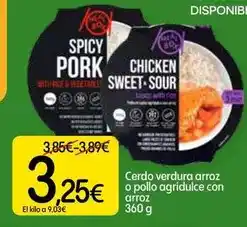 Dialprix Cerdo verdura arroz o pollo agridulce con arroz oferta