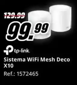 MediaMarkt TP-LINK Sistema WiFi Mesh Deco X10 ofertaTP-LINK Sistema WiFi Mesh Deco X10MediaMarkt129,99 €99,99 €30,00 € Descuento02 febrero 202608 febrero 2026