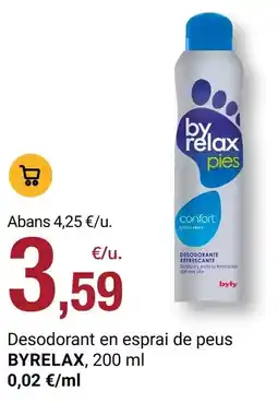 2BonpreuEsclat Byrelax - desodorant en esprai de peus ofertaByrelax - desodorant en esprai de peusBonpreuEsclat3,59 €22 abril 202604 mayo 2026 Mirar oferta