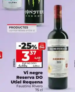 | FAUSTINO RIVERO Vi negre Reserva DO Utiel Requena 75 cl | Dia | 4,49 € | 3,37 € | -25% | 11 marzo 2026 | 17 marzo 2026 | |