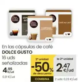 | DOLCE GUSTO Adierazitako kapsulak | Eroski | 5,19 € | 2,59 € | 2,60 € Descuento | 28 agosto 2025 | 16 septiembre 2025 | |