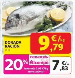 2Alcampo Dorada ración ofertaDorada ración 1 kgAlcampo9,79 €7,83 €1,96 € Descuento26 febrero 202611 marzo 2026 Mirar oferta
