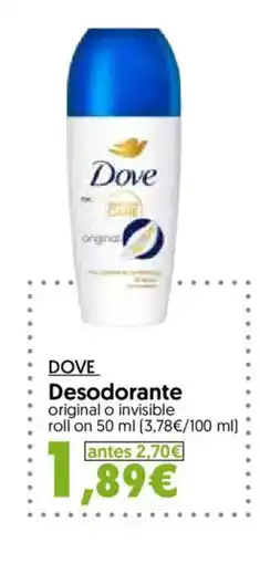 Supermercados El Jamón DOVE Desodorante Roll-On ofertaDOVE Desodorante Roll-On 100 mlSupermercados El Jamón2,49 €1,99 €0,50 € Descuento08 enero 202628 enero 2026